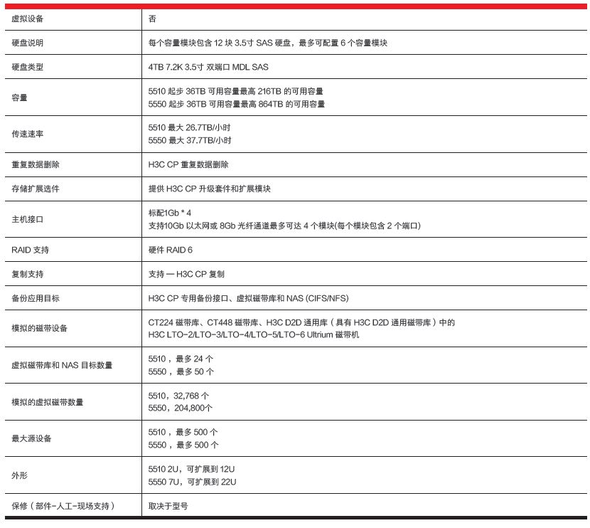 ? H3C CP 5550,其规模可从 36TB 可用容量扩展至 864TB 可用容量。